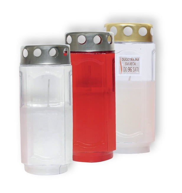 | Šifra artikla | Dimenzije (mm) | Trajanje plamena (do h) | U kartonu (kom) | Boja | Cijena (kom) | |
